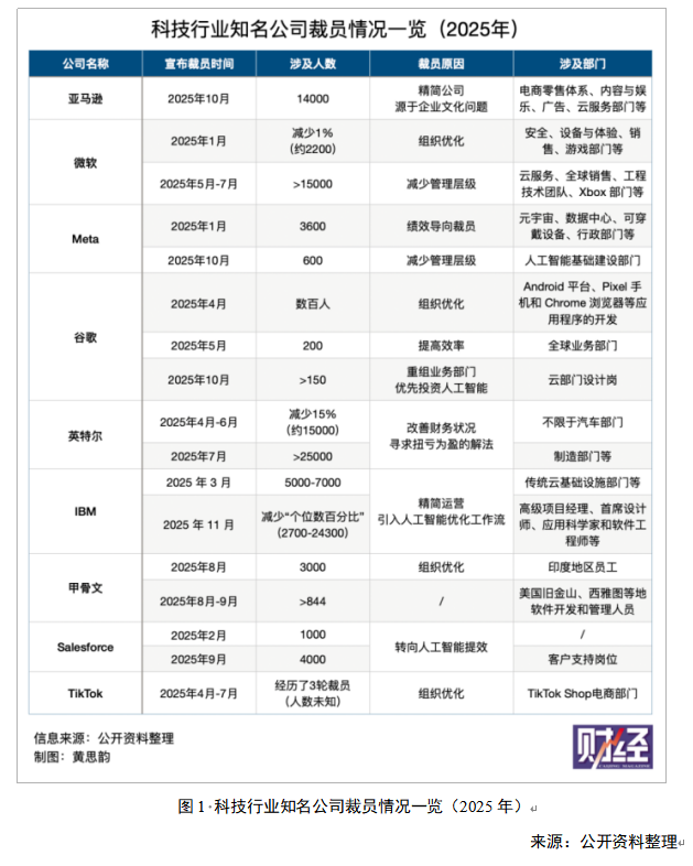 数据显示,2025年美国企业裁员总数已经超过110万人,科技行业成为重灾区。Amazon在财报亮眼的同时裁掉了1.4万名员工,微软(Microsoft)也裁员超过1.5万人。官方解释都是围绕AI展开:为了让企业更灵活、更高效,必须“精简组织结构”。不同于2022—2023年全行业普裁(如Meta单次裁员1.1万人),2025年裁员更集中于AI转型缓慢的业务线(如传统广告、低效电商)与中后台职能岗位(如行政、基础运维),而AI研发、云计算、量子计算等前沿部门仍在扩招。