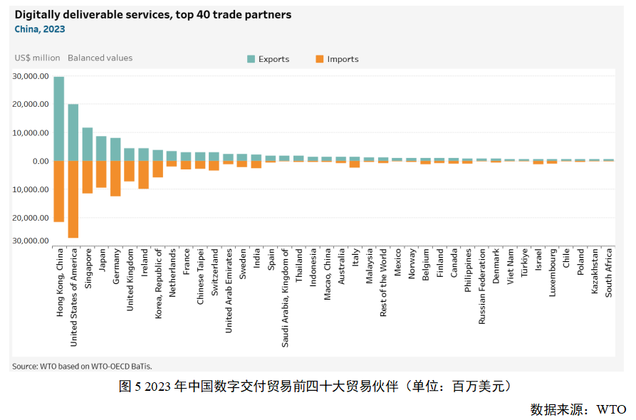 ⑤中国香港、美国、新加坡为中国前三大数字交付贸易伙伴
