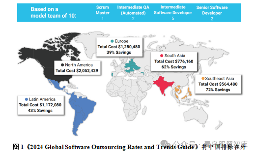 软件外包领域全球最大的咨询公司之一ACCELERANCE每年都会发布全球软件外包费率和趋势指南,并对全球主要外包目的地国家的外包成本和技术能力进行评估,以指导发包商的外包选址。在其最新发布的《2024 Global Software Outsourcing Rates and Trends Guide》中,更引人注目的把中国排除在外,不再提供中国的选项。
