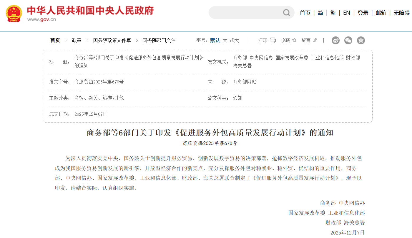 作为“世界工厂”的中国,虽然在高端服务领域仍落后于被称为“世界办公室”的印度,但正致力于向产业链上游迈进,转型为高端服务供应国,这一发展目标在 2025 年 12 月发布的政策文件中予以明确。