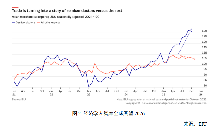 AI相关商品贸易在2025年上半年持续强劲增长。其中,今年第一季度AI相关商品的贸易增速为16.5%,第二季度增至21.7%;同期非AI相关商品的贸易增速仅分别为3.7%和4.2%。