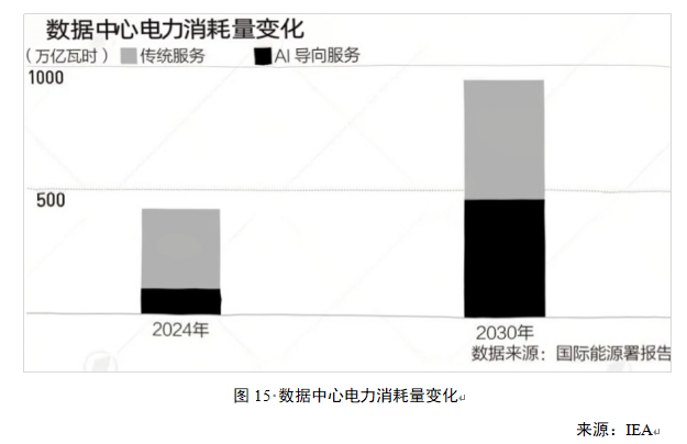 数据中心和人工智能带来电力需求爆炸式增长。随着全球投资者对数据中心的热情,将使得该领域有望获得5800亿美元的投资,超过对石油领域的投资(约5400亿美元)。在数据中心快速扩张的推动下,到2030年,人工智能(AI)优化服务器的用电量将增加5倍。这将直接推动2030年全球数据中心的用电量在当前基础上翻一番其用电需求将占到全球的10%左右。例如由于人工智能的发展,英国数据中心的电力需求或在短短十年内增长六倍,据爱尔兰中央统计局数据,2024年数据中心消耗了爱尔兰全国21%的电力,2015年这一数字仅为5%。预计到2028年,这一数字将达到27%。