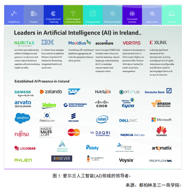 爱尔兰以“低税率+欧盟门户+英语生态+创新集群”的组合优势,在全球人工智能服务产业链中占据了有利位置,形成了强大的产业集群效应。换言之,这是优越的商业环境、前瞻的产业政策、稳健的宏观治理和独特的地缘优势共同作用的结果。