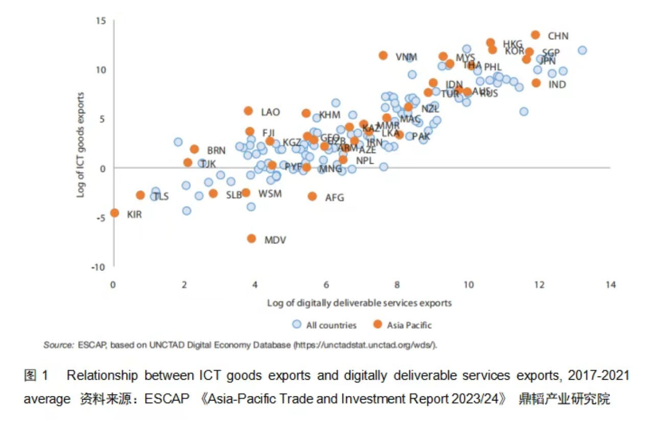 [2] Digital services as inputs: In addition to cross border services supply (mode 1), digitally deliverable services are becoming important inputs for goods exports. Specifically, digital services are vital for implementing Industry 4.0 technologies, driving value addition in SMART manufacturing products (UNIDO, 2019). Even in primary sectors like mining and agriculture, data services are becoming indispensable, equipping businesses with the means to improve productivity, reduce wastage, mitigate risks and offer enhanced solutions to their clients. The nature of international production networks with increasing reliance on digital services as inputs inherently imply that digital services are bundled with goods and traded along GVCs. ESCAP《Asia-Pacific Trade and Investment Report 2023/24》