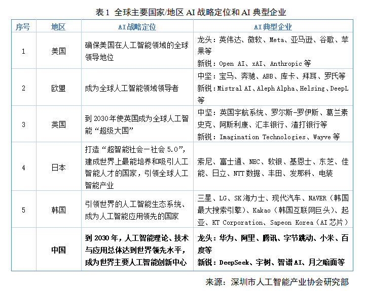 中国:人工智能+。在一系列重要指引下,人工智能在中国自2015年起被纳入国家层面政策文件中。从2015年到2025年,从“互联网+”到“AI+”,随着国务院发布《关于深入实施“人工智能+”行动的意见》的发布,我国已将人工智能提升至国家战略高度。文件把人工智能发展提升到“重塑人类生产生活范式,促进生产力革命性跃迁和生产关系深层次变革,形成人机协同、跨界融合、共创分享的智能经济和智能社会新形态”的战略高度。